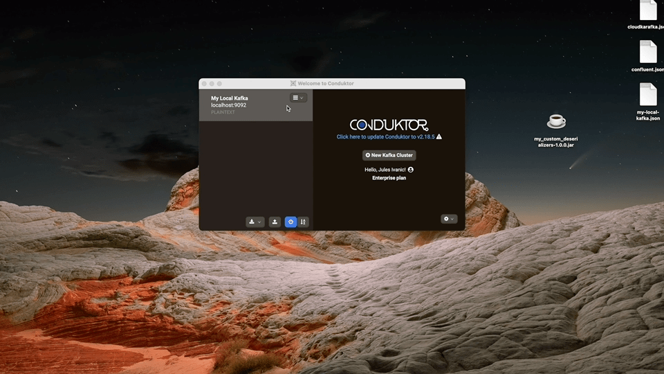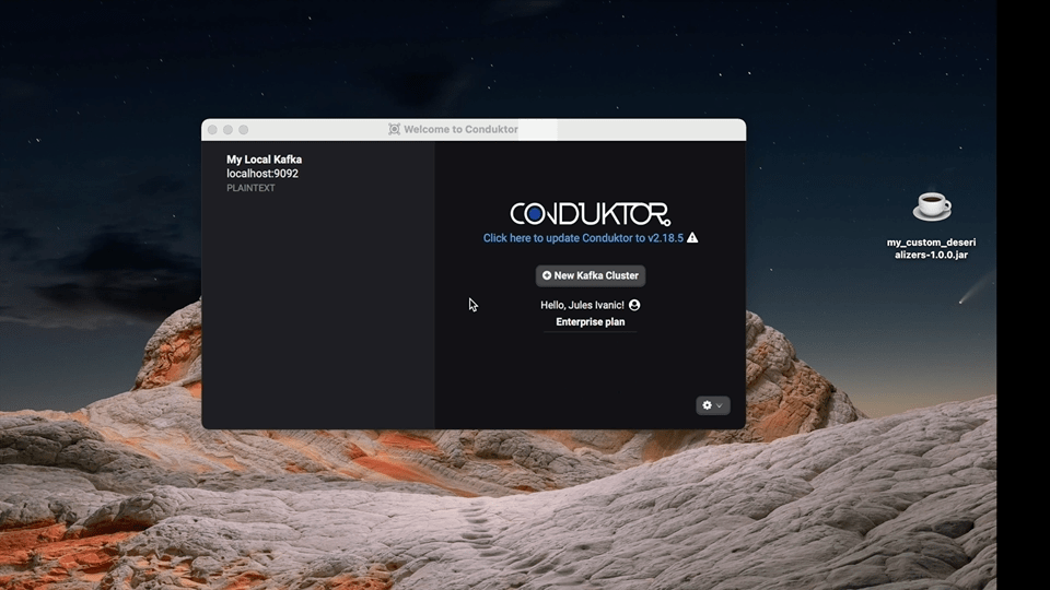 You could have for example used MessagePack, Capt’n Proto, or even your own custom serialisation format that you developed internally to encode your data in Kafka. To allow you to consume this data serialized with a “custom format” directly from Conduktor, Conduktor allows you to use your own custom deserializers. This page will explain you how to configure Conduktor to use your custom deserializer to consume this kind of data.