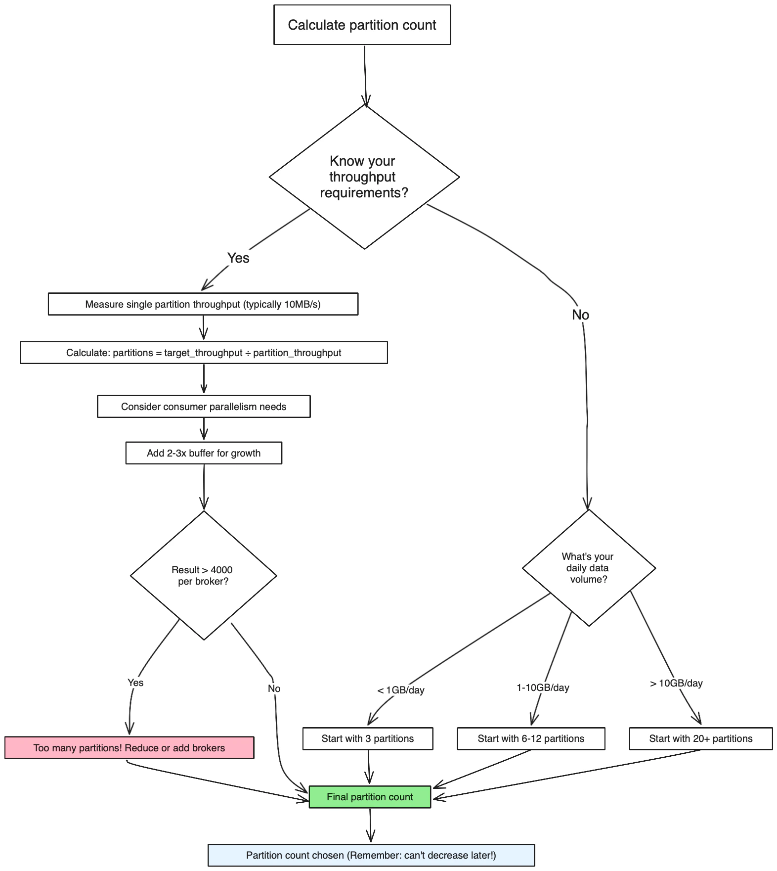 Use this decision tree to calculate the optimal number of partitions: